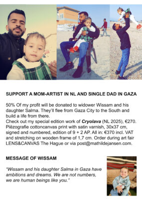 My work will be shown at Art Fair Lens&Canvas 2025. Location: Grey Space in the Middle, Paviljoensgracht 20-24, The Hague. Date: Sep 26 – 28 2025. Check https://www.lenscanvas.art/artists/mathilde-jansen. I hope to see you there!